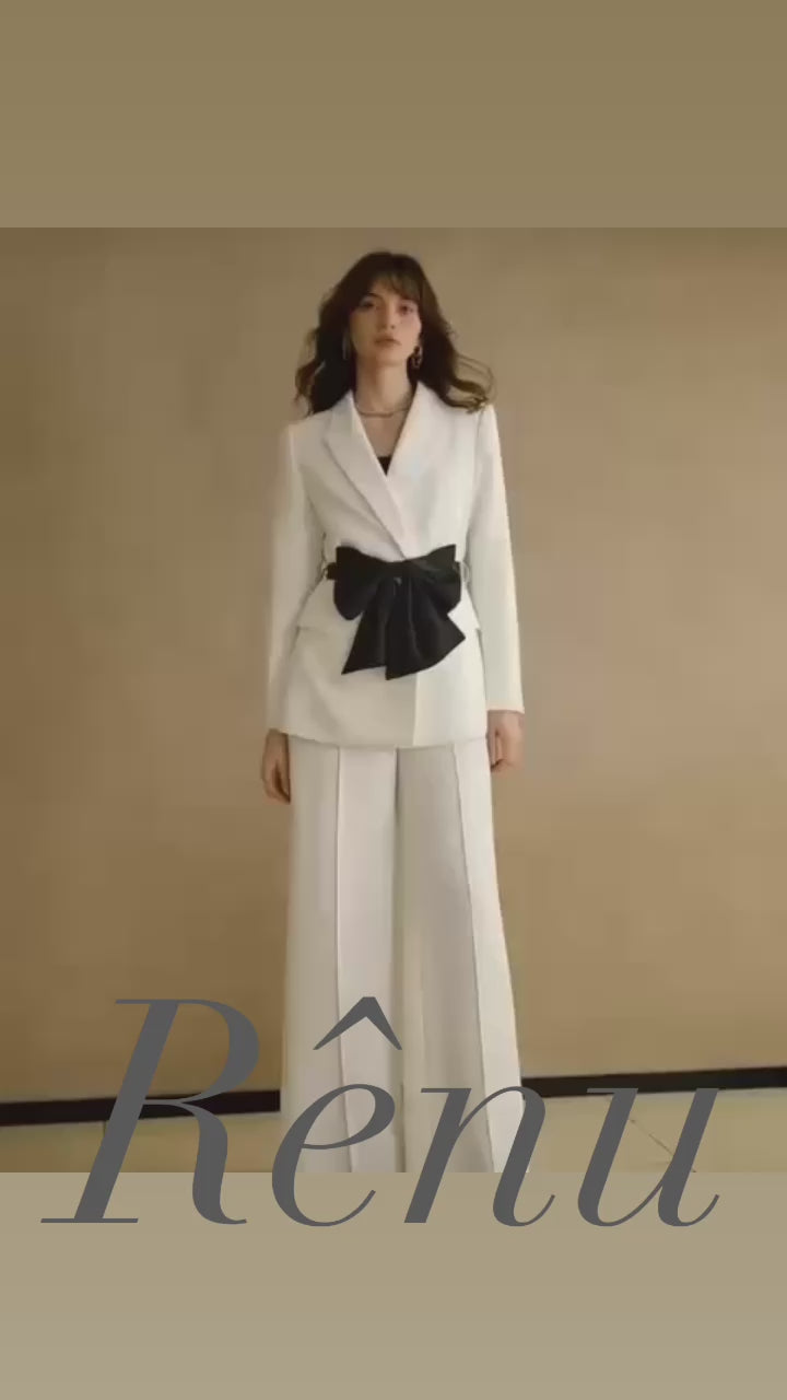 Tailleur con dettaglio fiocco sulla giacca e pantalone a zampa